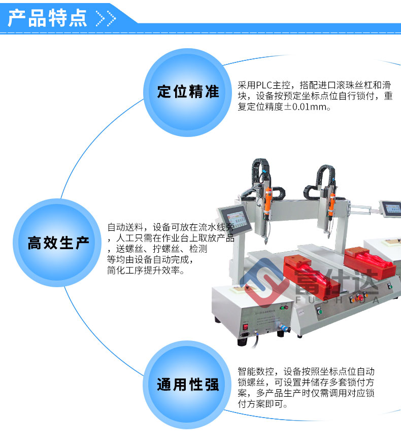 富仕達(dá)自動(dòng)鎖螺絲機(jī)尺寸可根據(jù)產(chǎn)品尺寸大小及生產(chǎn)線情況來(lái)設(shè)計(jì),定制真正好用的自動(dòng)鎖螺絲設(shè)備。
